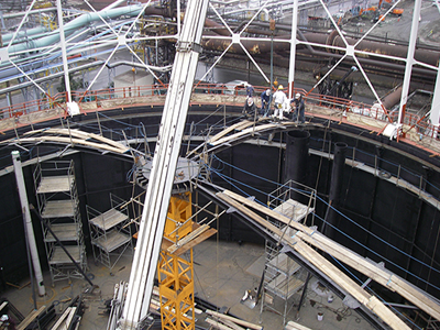 当社は、タンクの設計・製作を行ってきたメーカーとして、耐震性の再評価、検査結果に基づく状態評価、補修計画の立案、および工事の実施まで一貫して、対応することが可能です。