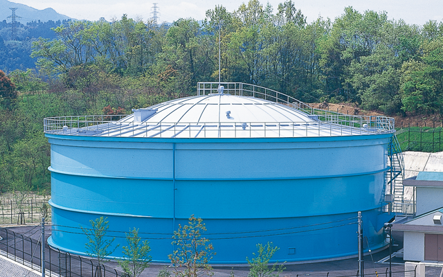 水封機構により低圧ガスを安定的に貯蔵。製鋼ガス・都市ガス他、各種ガスに対応。特に大型ガスホルダーを得意とし、構造設計から製作・現地据付まで一貫して対応します。