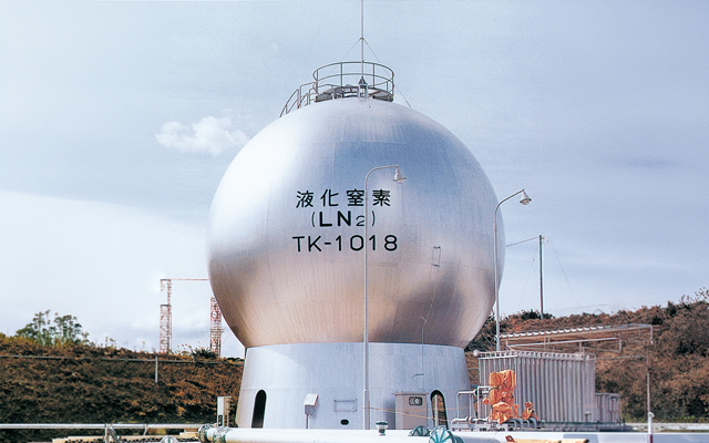 内槽・外槽からなる二重殻鋼製構造により、LNG・液化窒素・液化アルゴン等の極低温液体を安全に貯蔵。パーライト断熱を採用し、低温特性を踏まえた設計を行います。