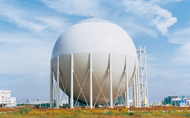 球殻構造により内圧を均一に分散し、高い耐圧性能と安全性を確保。都市ガス・LPGなど高圧ガスを大容量で安定貯蔵。高度な曲げ加工と溶接技術で信頼性を実現。