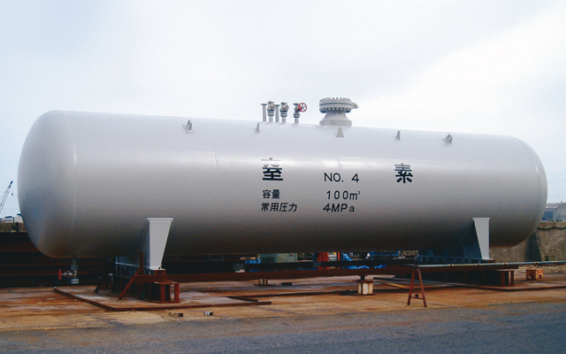 内槽・外槽からなる二重殻鋼製構造により、LNG・液化窒素・液化アルゴン等の極低温液体を安全に貯蔵。パーライト断熱を採用し、低温特性を踏まえた設計を行います。