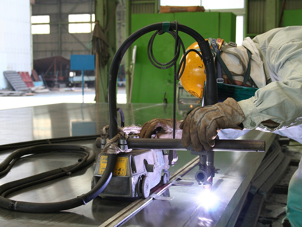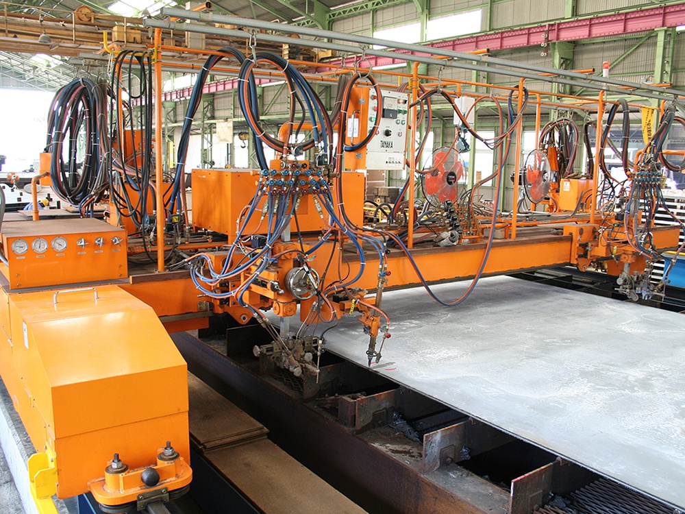 加工工場には1,500tonプレス機、ベンディングロール、NC切断機などを設置し、プレス曲げ加工、切断作業などを主に行っております。