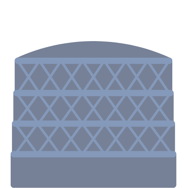 水封機構により低圧ガスを安定的に貯蔵。製鋼ガス・都市ガス他、各種ガスに対応。特に大型ガスホルダーを得意とし、構造設計から製作・現地据付まで一貫して対応します。
